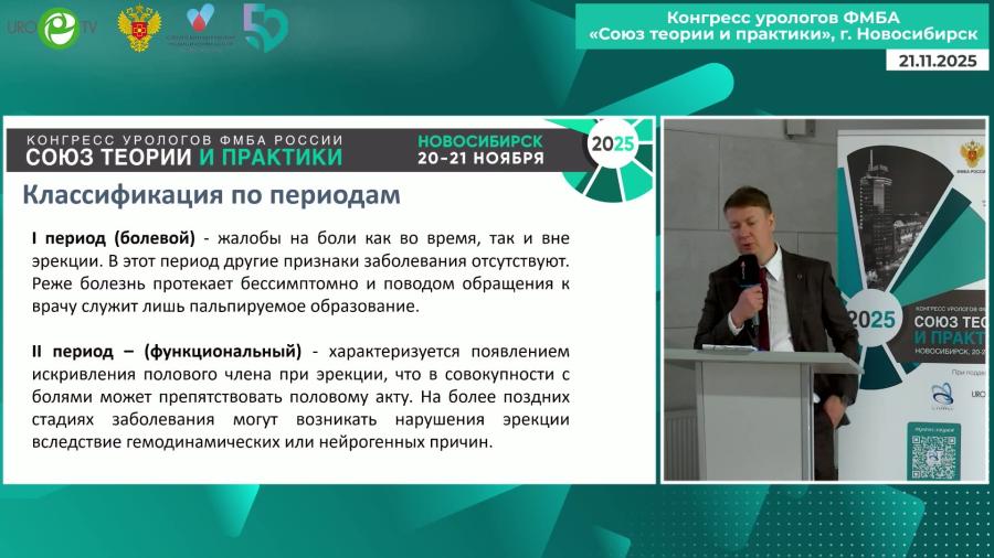 Руководитель центра урологии и андрологии ФМБА России, д.м.н., Кызласов П.С. в своем докладе “Современный подход к лечению болезни Пейрони”